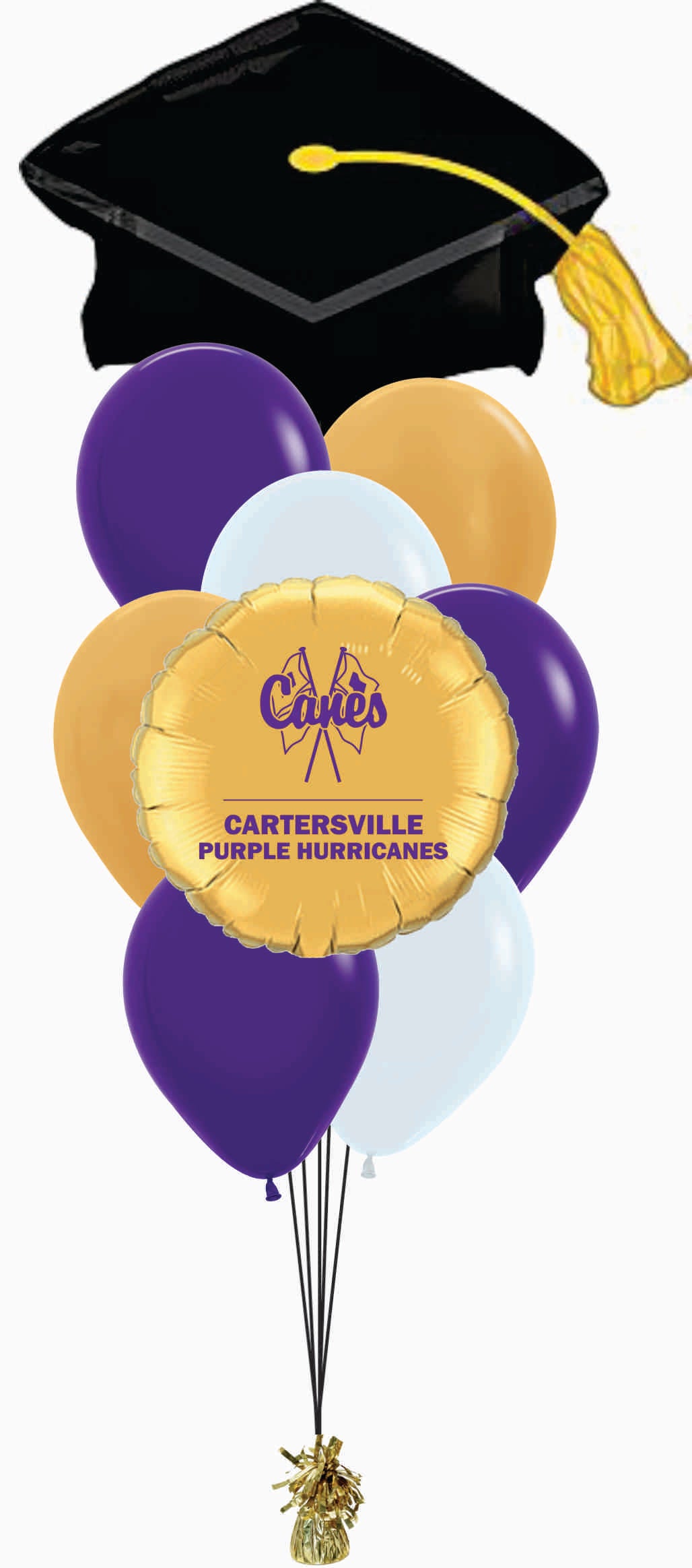 - One helium filled Cartersville Purple Hurricanes foil balloon
