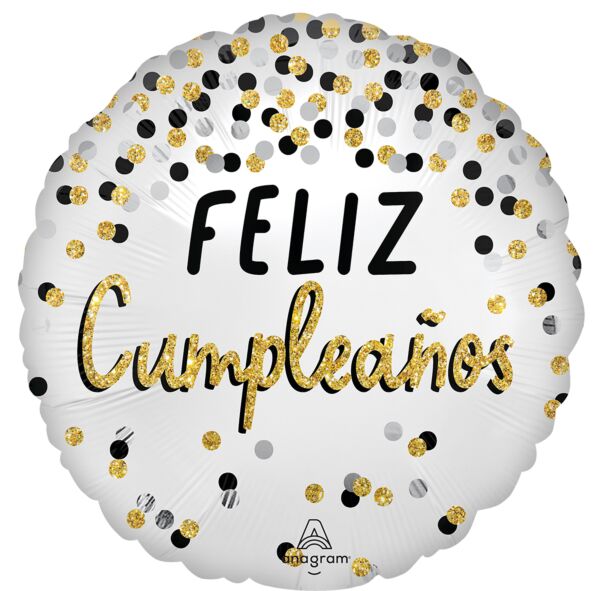Feliz Cumpleanos Black, Silver and Gold Balloon