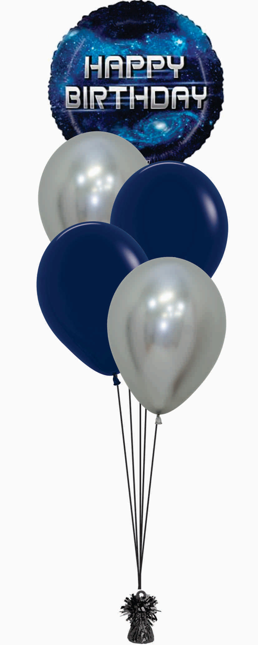 - Four helium filled premium 11" latex (2 navy, 2 reflex silver)