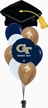 - Seven helium filled premium 11" latex (2 navy, 3 reflex gold, 2 white)
